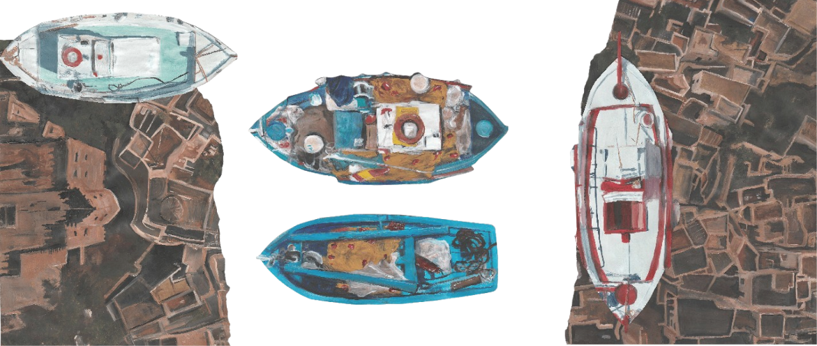 By overlaying these human stories with cartographic gestures and historic architectural fragments, the paintings act as a form of behavioural countermapping; challenging traditional ways of viewing place and heritage to emphasise the people and the coastal city under threat. This work asks us to reflect on